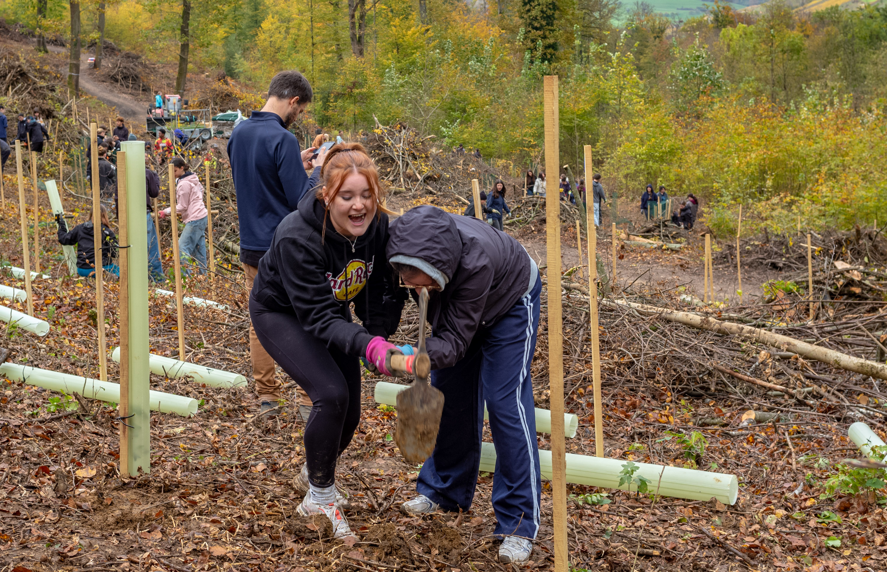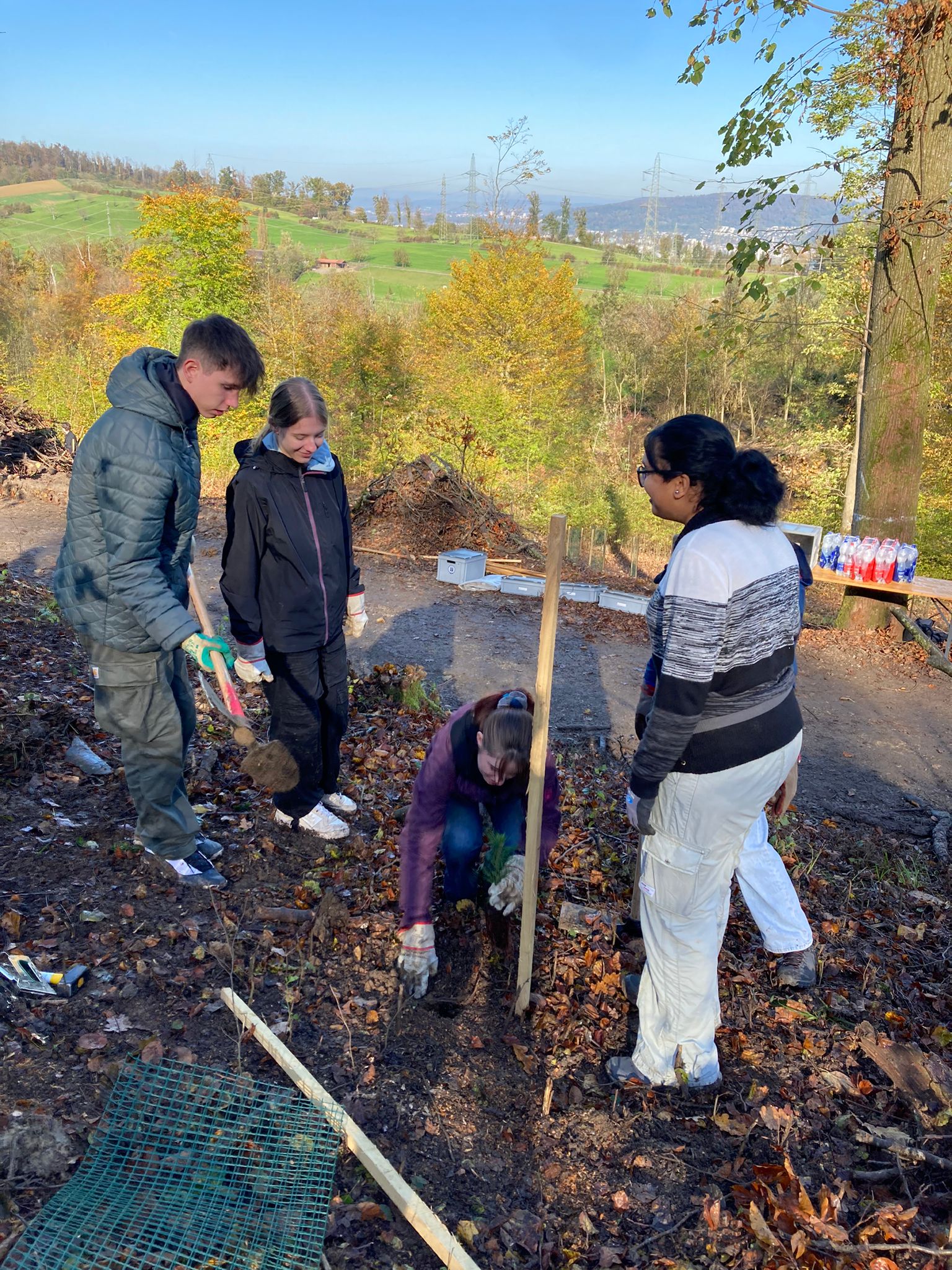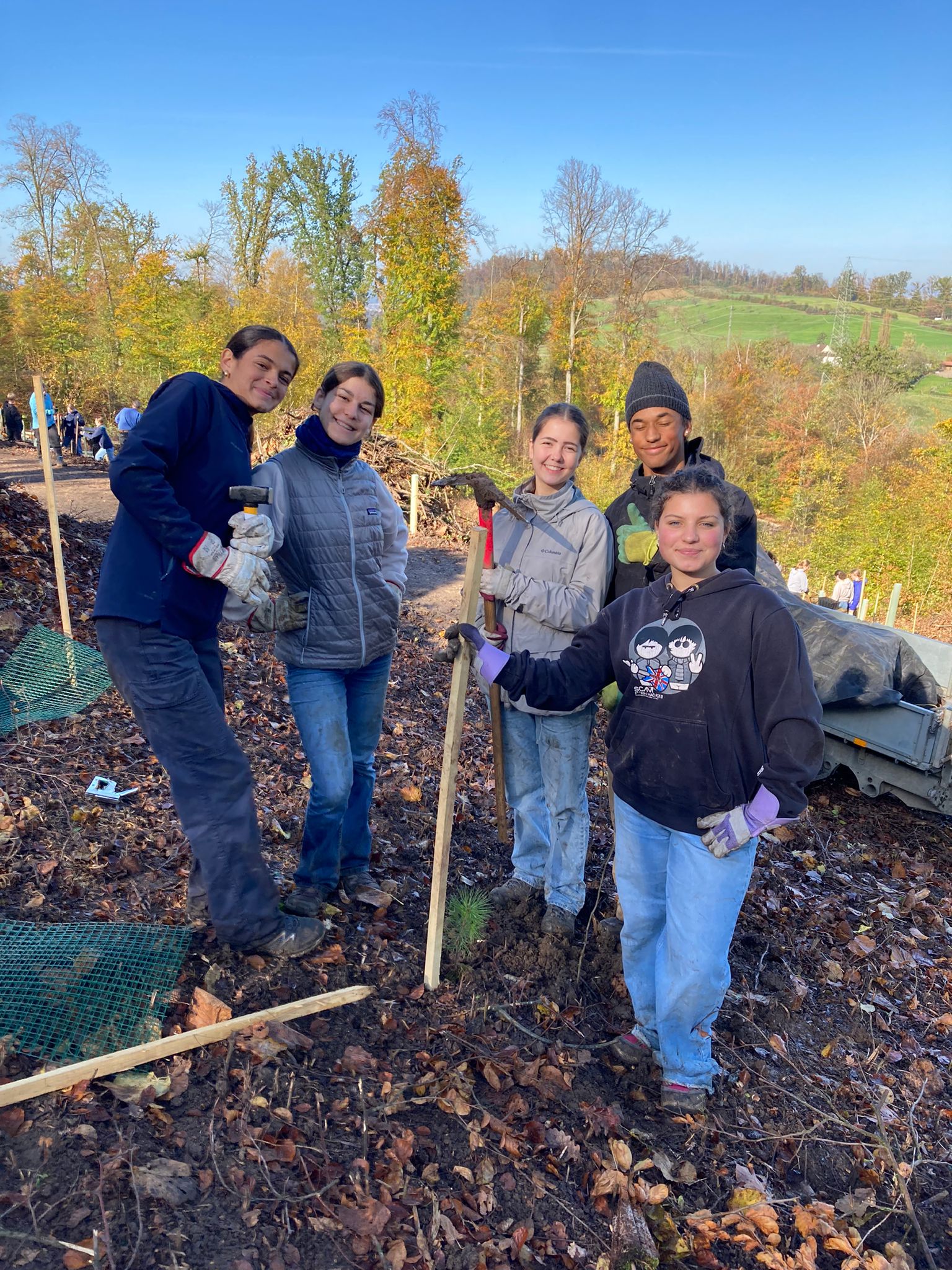 «Um ehrlich zu sein – als wir morgens um acht Uhr in der Kälte einen Hügel hinaufwandern mussten, hatte ich nicht wirklich Motivation. Aber überraschenderweise änderte sich das schlagartig, als wir anfingen, junge Bäumchen einzupflanzen; da waren wir alle voll bei der Sache und es machte so Spass».