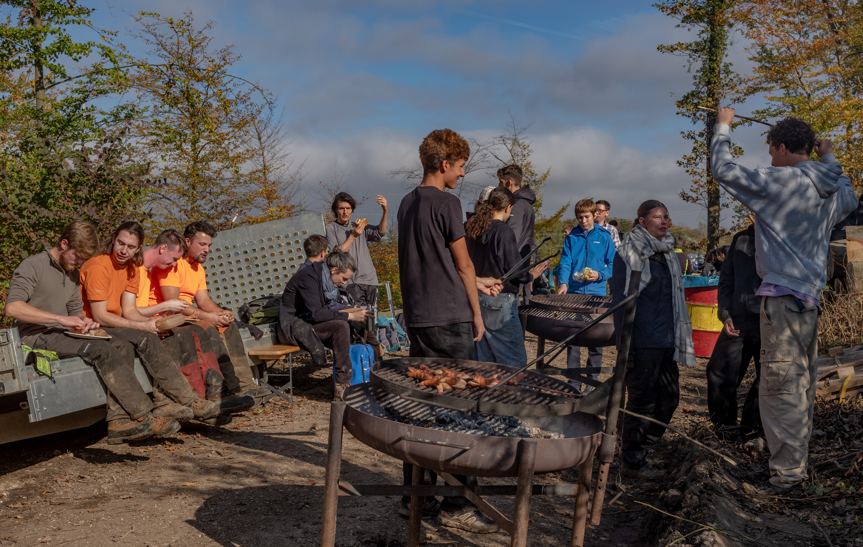 Zum Glück gab es dann eine Pause. Wir bekamen zur Begeisterung aller Schoggiweggli spendiert und konnten uns an Feuerschalen wärmen und trocknen.