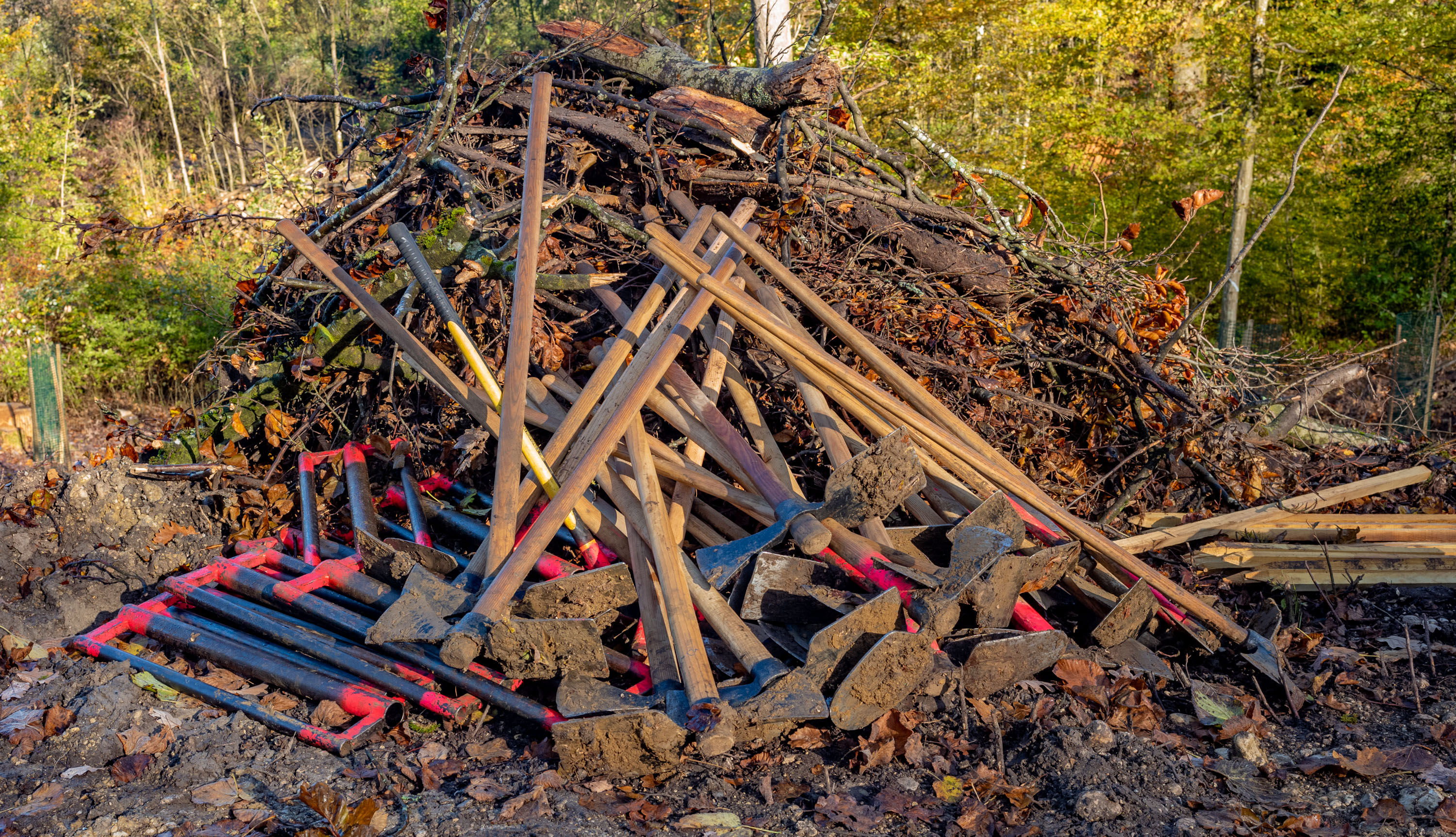 Nach vollendeter Pflanzaktion sammelten wir die im Wald verstreuten Werkzeuge ein und deponierten sie auf den Forstfahrzeugen.