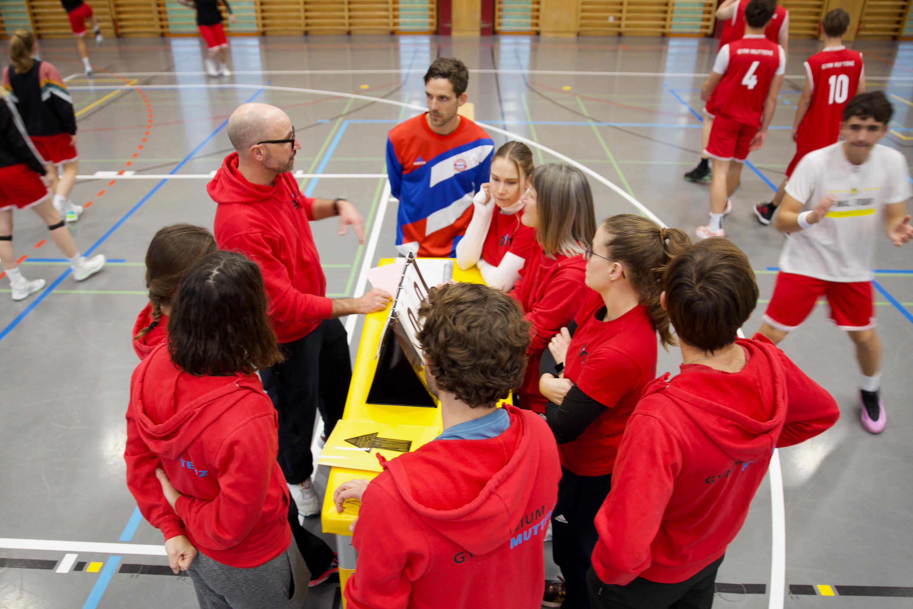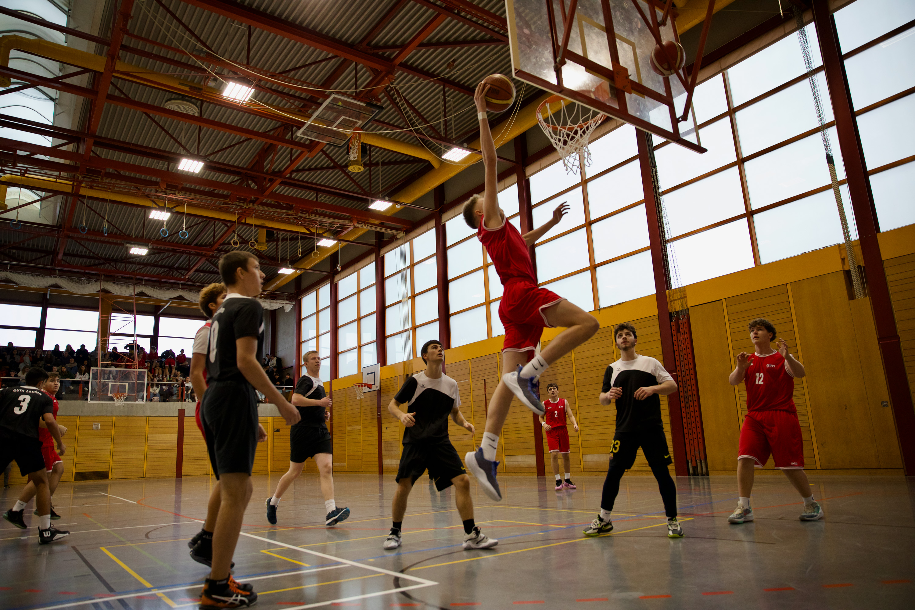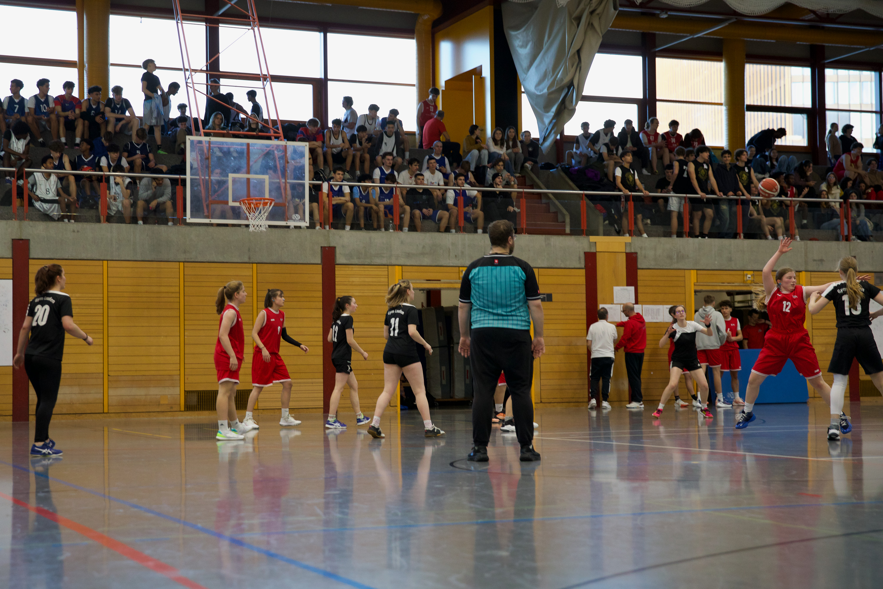 Der letzte Neuschnee ist geschmolzen und die Temperaturen steigen – nicht nur draussen, sondern auch in der Sporthalle des Gymnasiums Muttenz. Aber Weihnachten ist noch nicht vorbei. Das Basketball-Vorweihnachtsturnier geht in die heisse Phase. Gerade sichert sich das Herrenteam des Gymnasiums Muttenz in einem dramatischen Showdown gegen das Gymnasium Leonhard den Verbleib im Turnier – 10:9 in den letzten Sekunden. Coach Ramon Morf atmet erleichtert auf. Doch es gibt keine Verschnaufpause, denn das Damenteam von Muttenz tritt direkt gegen das Gymnasium Laufen an – und sichert sich in seinem Heimspiel 12:6 einen klaren Sieg.