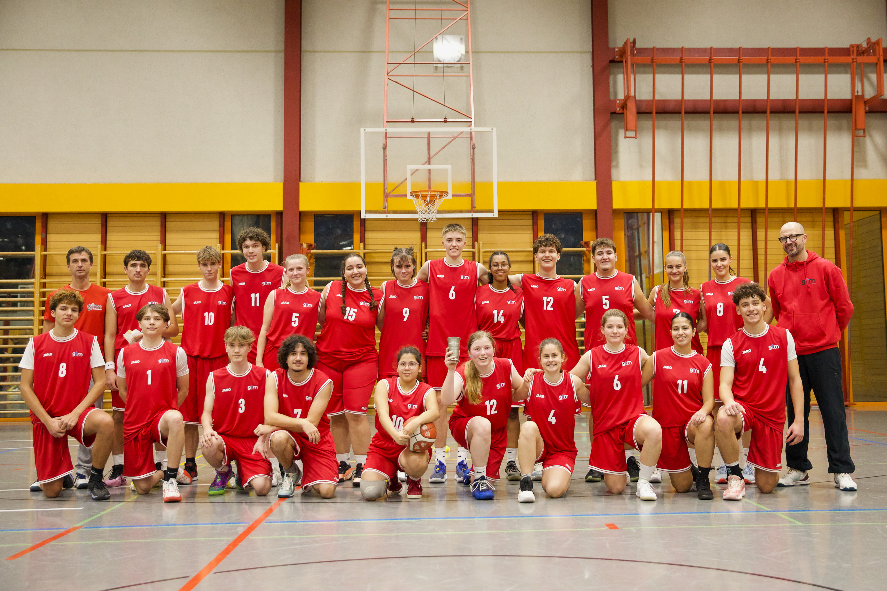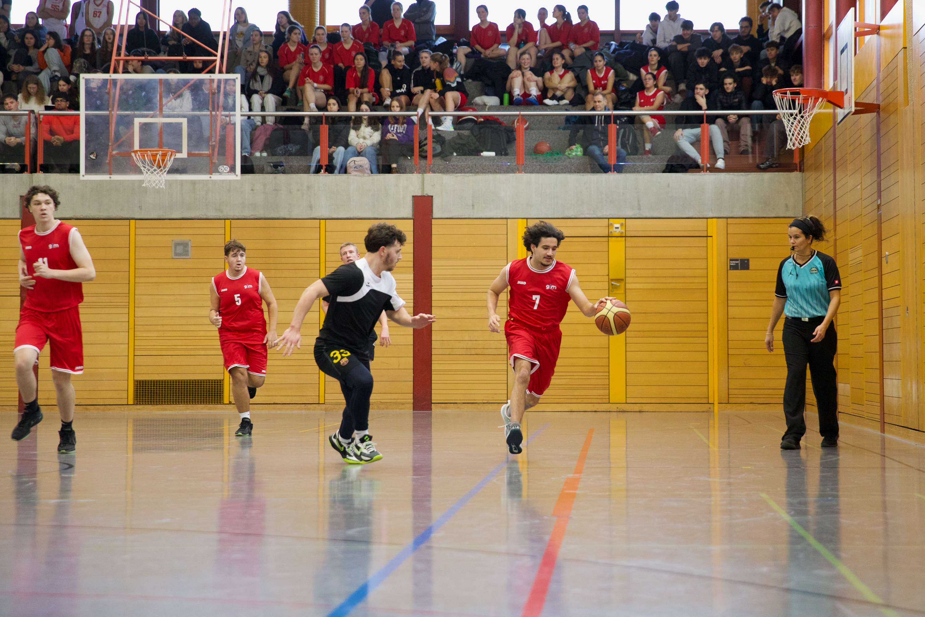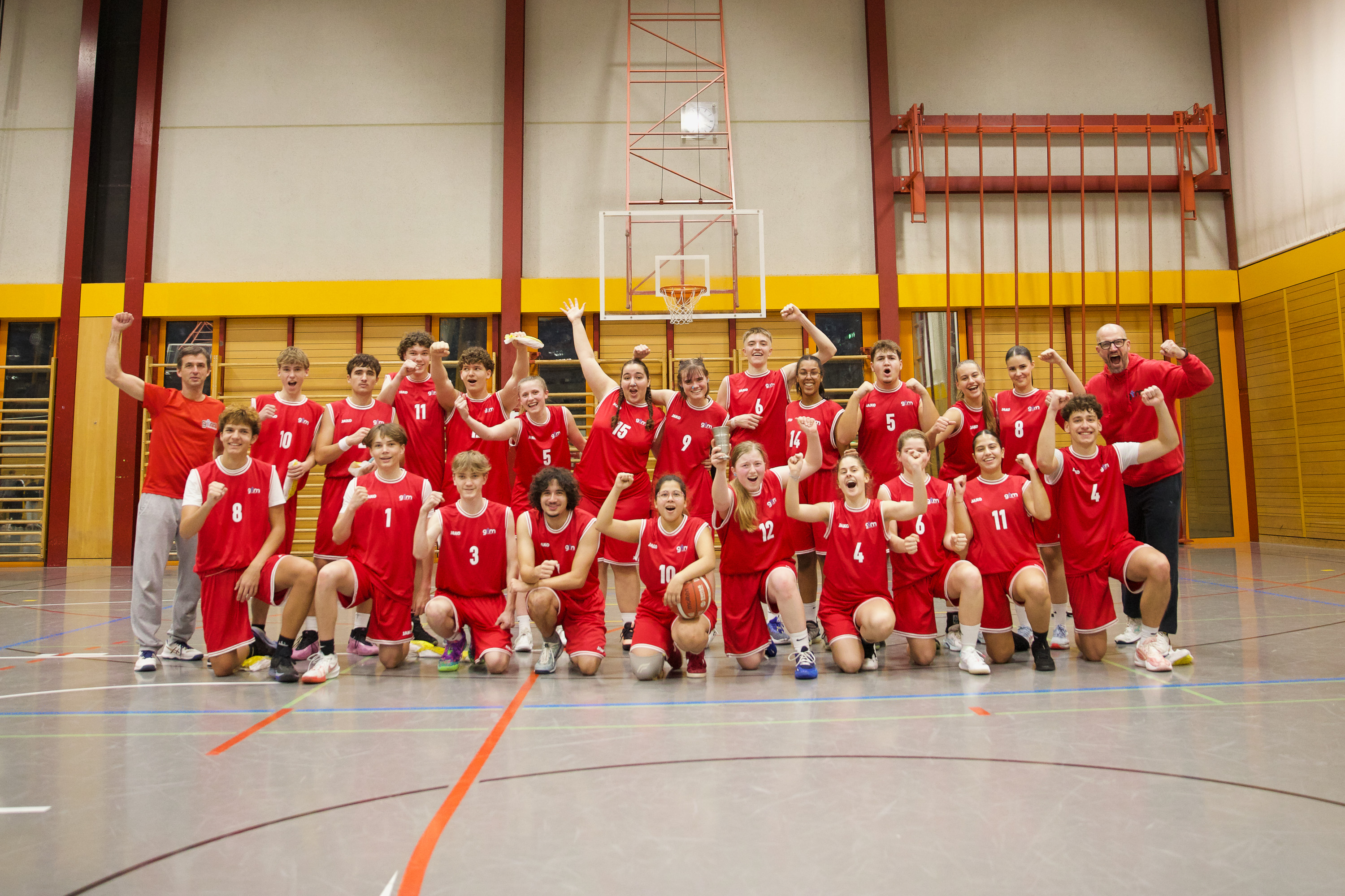 Der letzte Neuschnee ist geschmolzen und die Temperaturen steigen – nicht nur draussen, sondern auch in der Sporthalle des Gymnasiums Muttenz. Aber Weihnachten ist noch nicht vorbei. Das Basketball-Vorweihnachtsturnier geht in die heisse Phase. Gerade sichert sich das Herrenteam des Gymnasiums Muttenz in einem dramatischen Showdown gegen das Gymnasium Leonhard den Verbleib im Turnier – 10:9 in den letzten Sekunden. Coach Ramon Morf atmet erleichtert auf. Doch es gibt keine Verschnaufpause, denn das Damenteam von Muttenz tritt direkt gegen das Gymnasium Laufen an – und sichert sich in seinem Heimspiel 12:6 einen klaren Sieg.