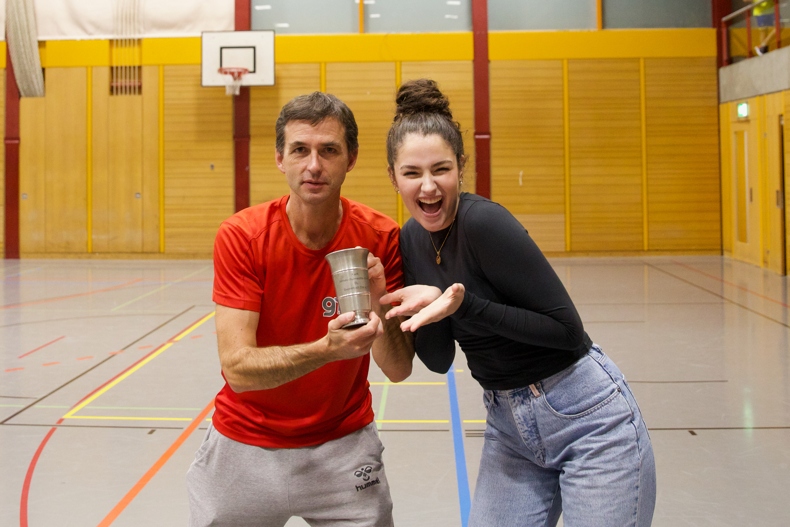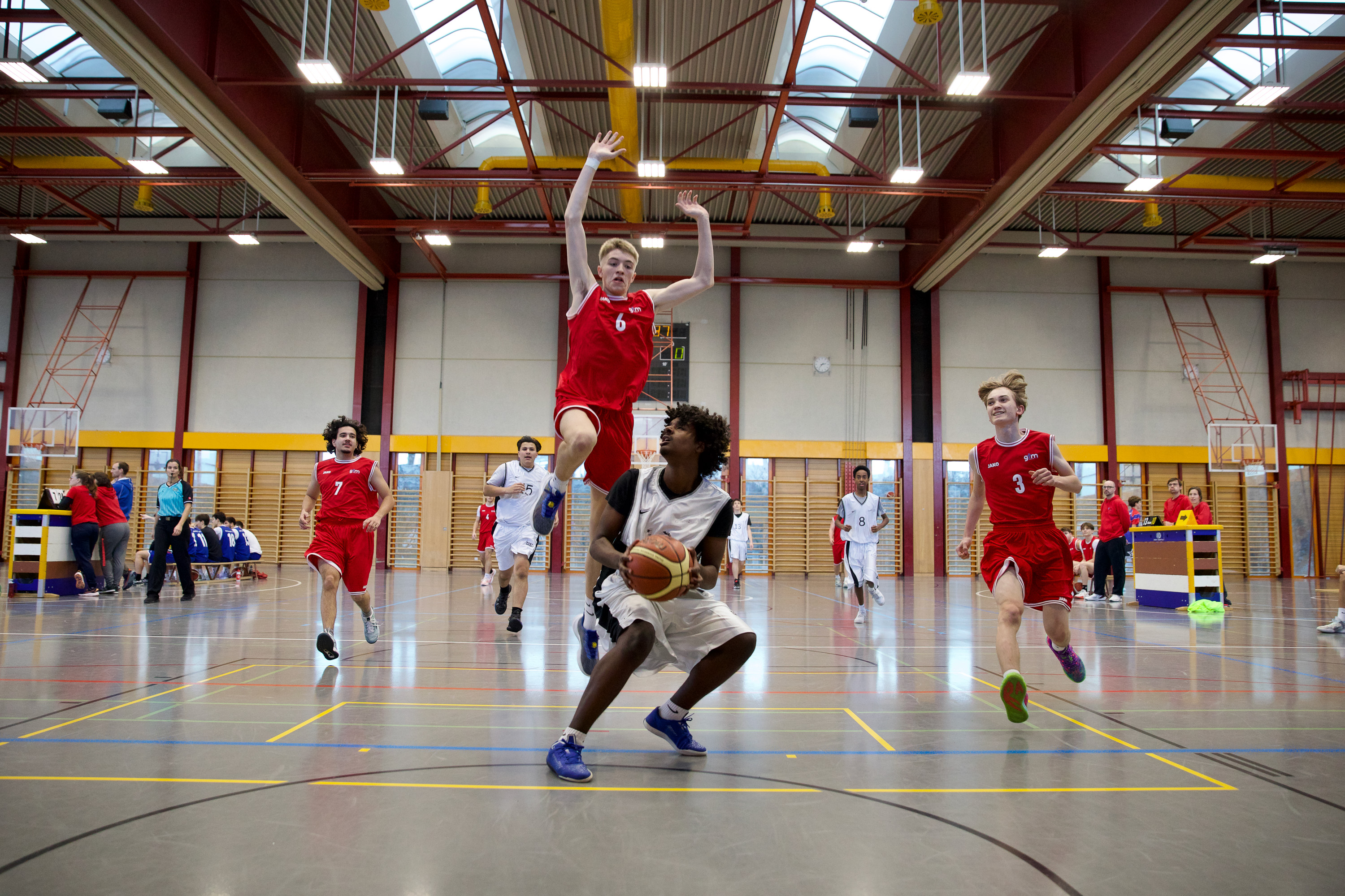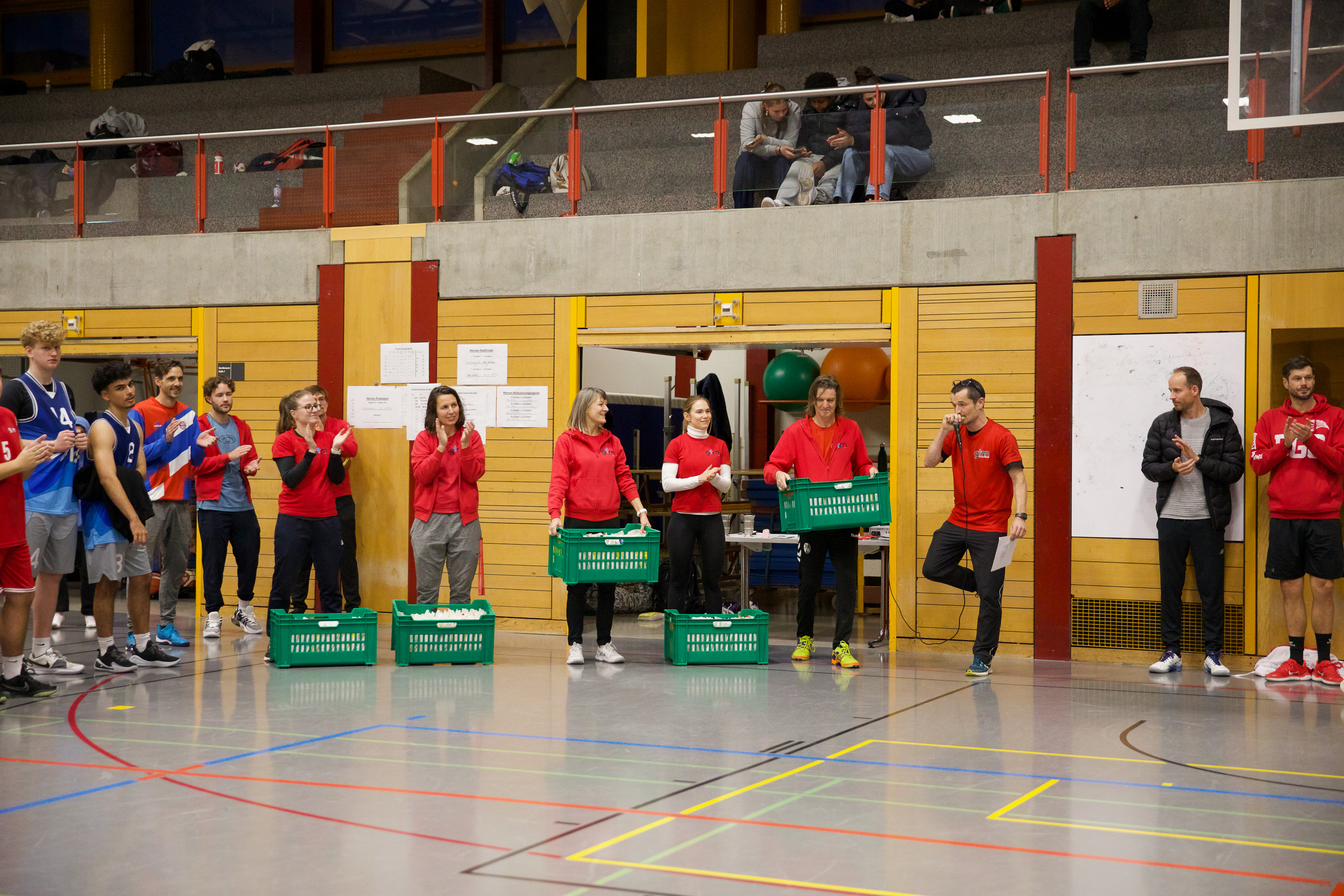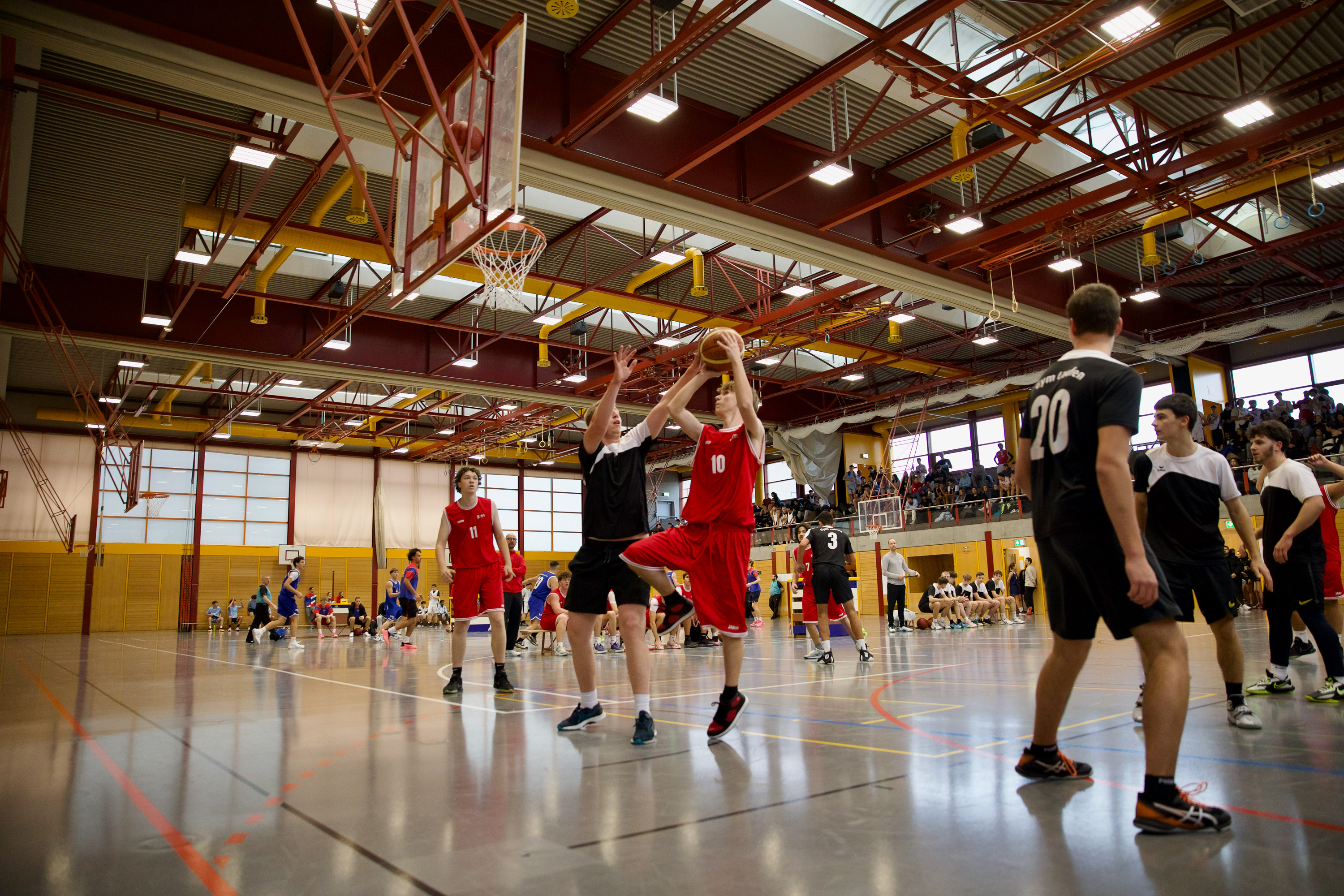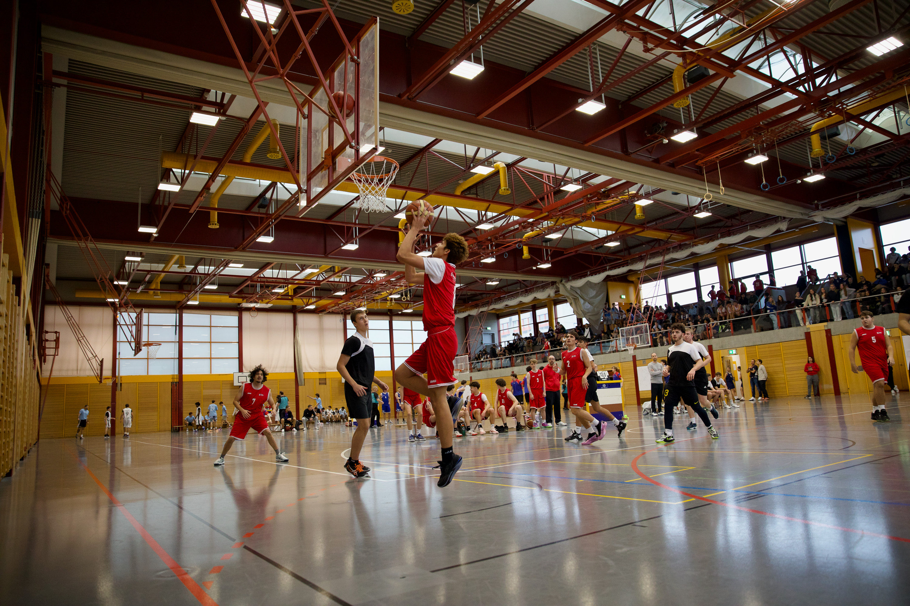 Wir bleiben für weitere Eindrücke vor Ort. Beim Spiel des Damenteams gegen Oberwil schwankt Coach Adi Marbacher zwischen Begeisterung und Verzweiflung. Wir füttern die Kamera mit Luftakrobatik, Bodenarbeit und Teamspirit. Und dieser Teamspirit wird am Abend gebührend gefeiert werden – mit einem gemeinsamen Nachtessen der Sportlehrpersonen, die sich für ihr ganzjähriges sportliches, erzieherisches und soziales Engagement belohnen.