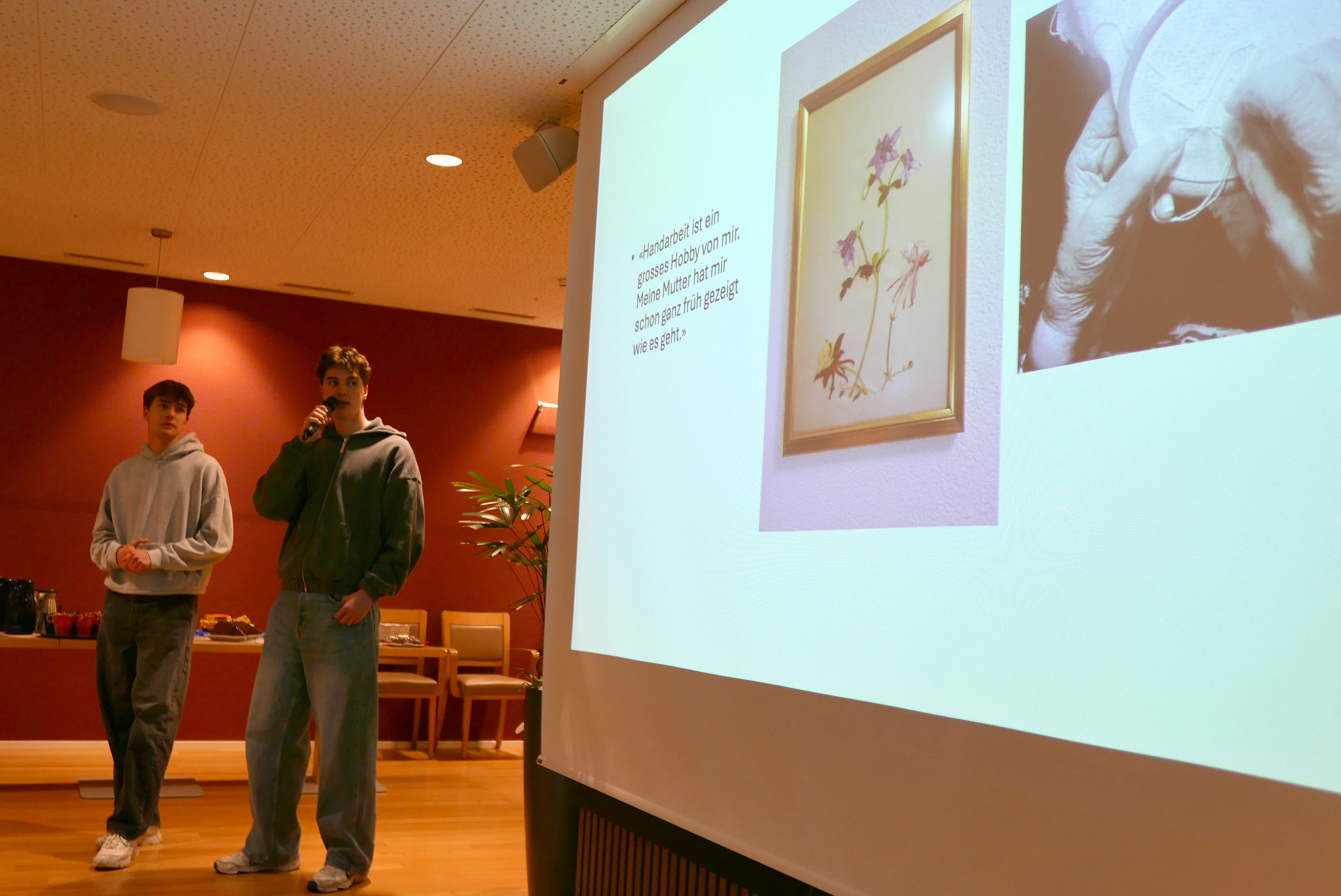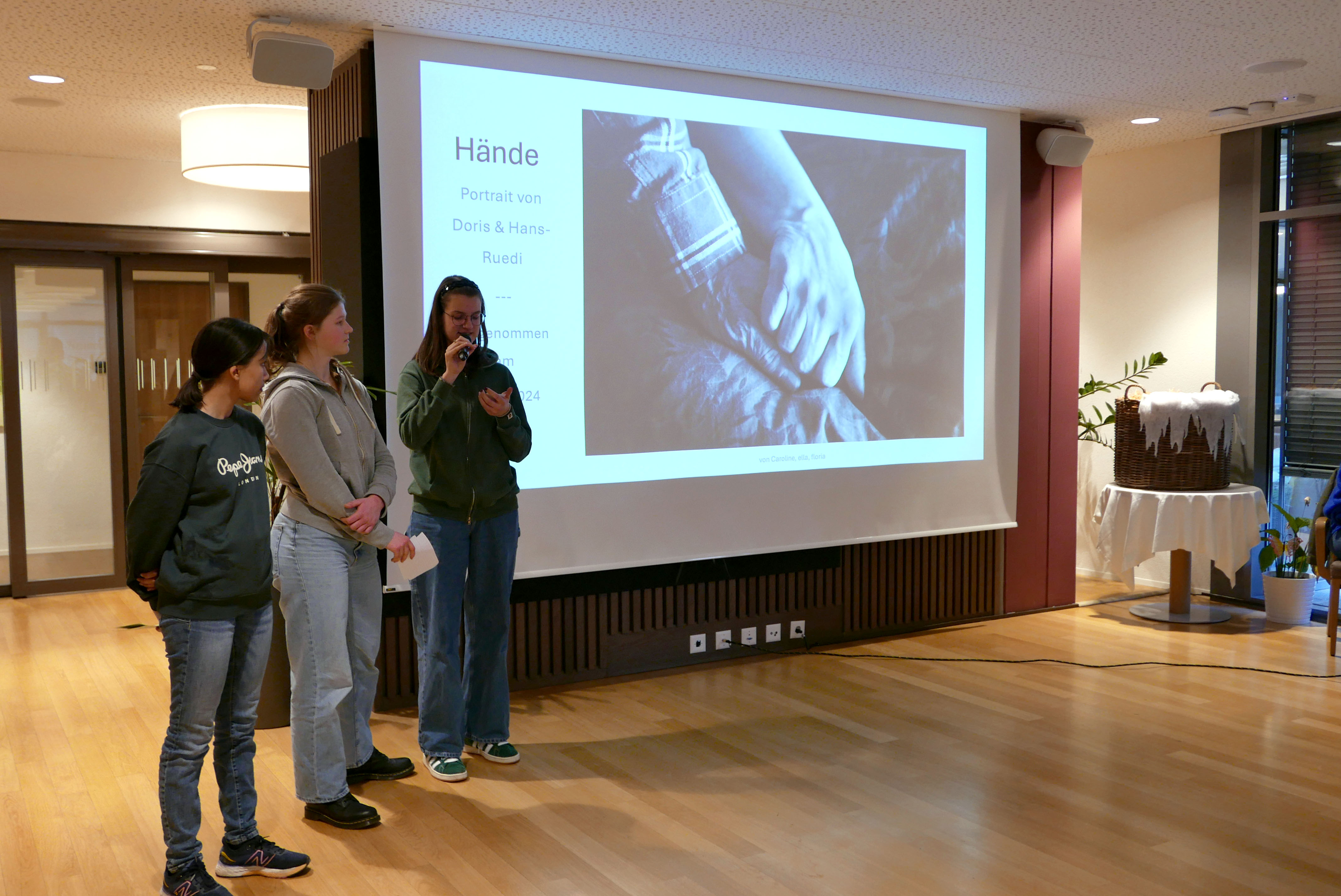 Für die Schüler:innen war die Arbeit mit Zeitzeugen neu, was einige Herausforderungen mit sich brachte. Während der wenigen Besuche im Altersheim mussten sie eine Verbindung zu den befragten Menschen aufbauen und Vertrauen schaffen, um über persönliche und oft auch traurige oder gar traumatische Erlebnisse sprechen zu können. Doch Dank viel Einfühlungsvermögen von beiden Seiten kam es rach zu einem generationenübergreifenden Dialog, der für alle Beteiligten als sinnstiftend wahrgenommen wurde. Mit Zitaten, Bildern, Tondokumenten und persönlichen Einschätzungen zeigten die Schüler:innen an der Vernissage, wie unterschiedlich Lebenswege verlaufen und wie einzigartig jede Person und ihre Geschichte sind. Wir möchten uns bei allen Beteiligten für ihre Bereitschaft, an diesem Oral History Projekt teilzunehmen bedanken, und Sie alle dazu motivieren, Geschichten auszutauschen und die Vergangenheit lebendig zu halten.