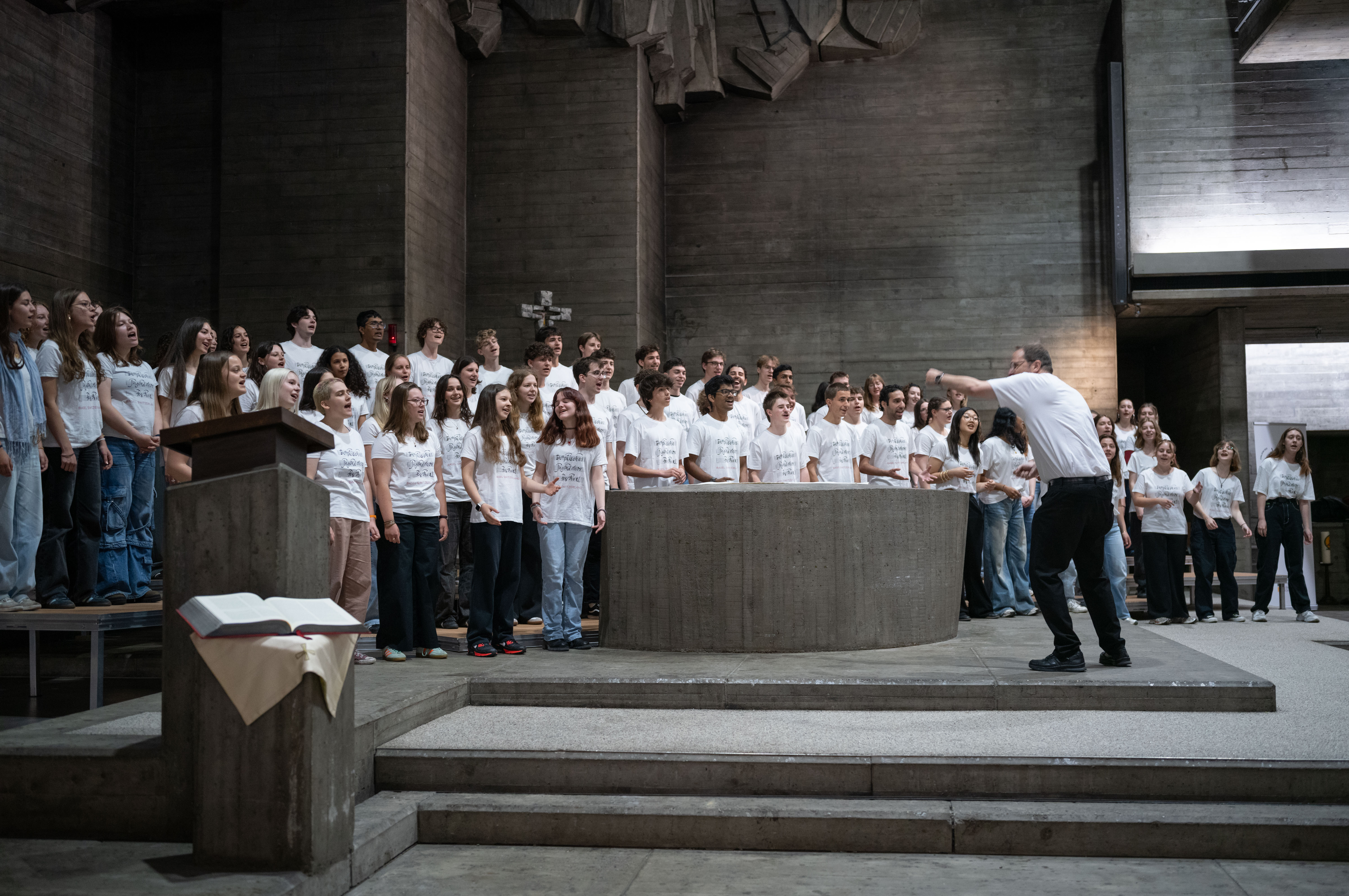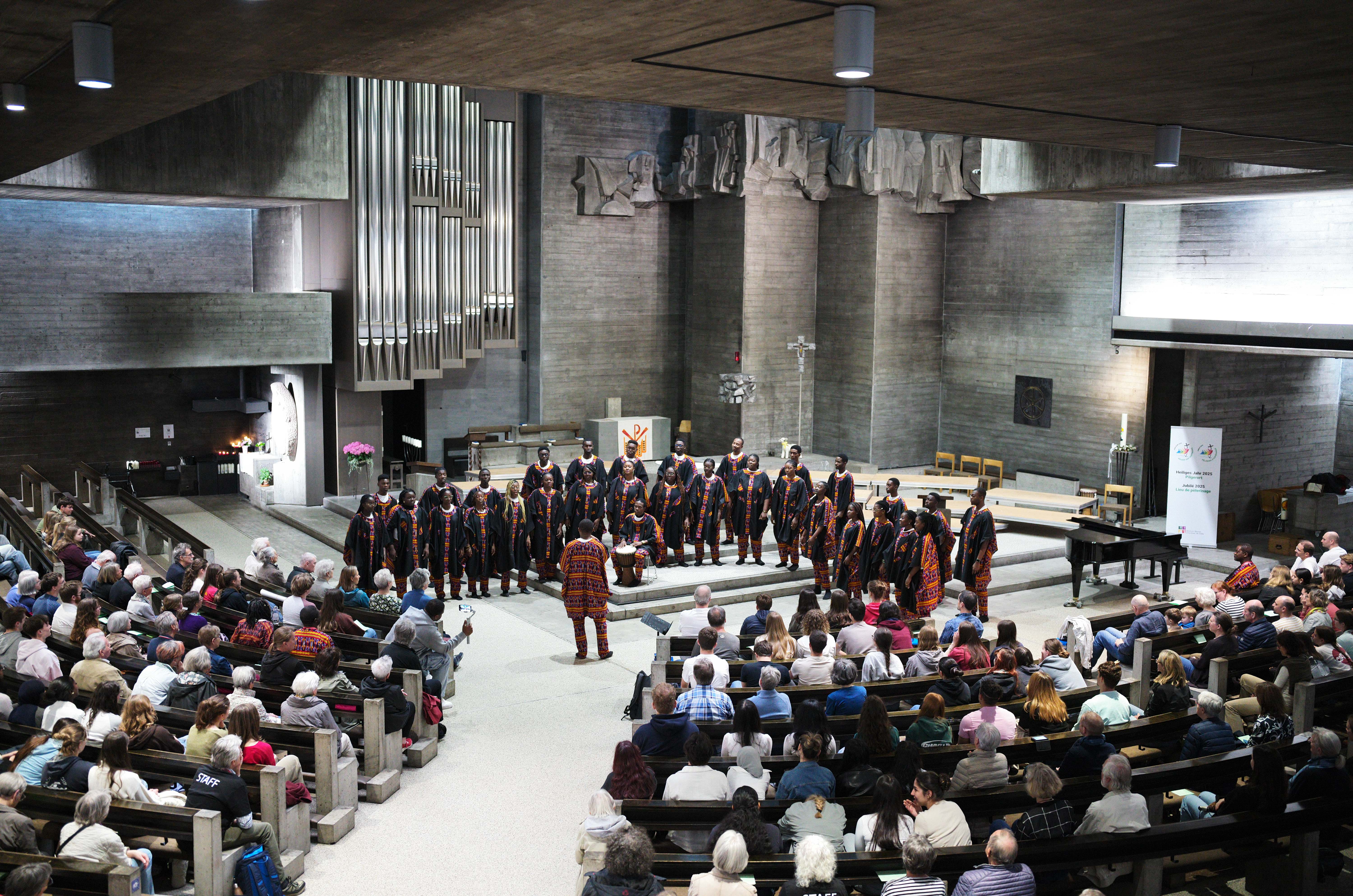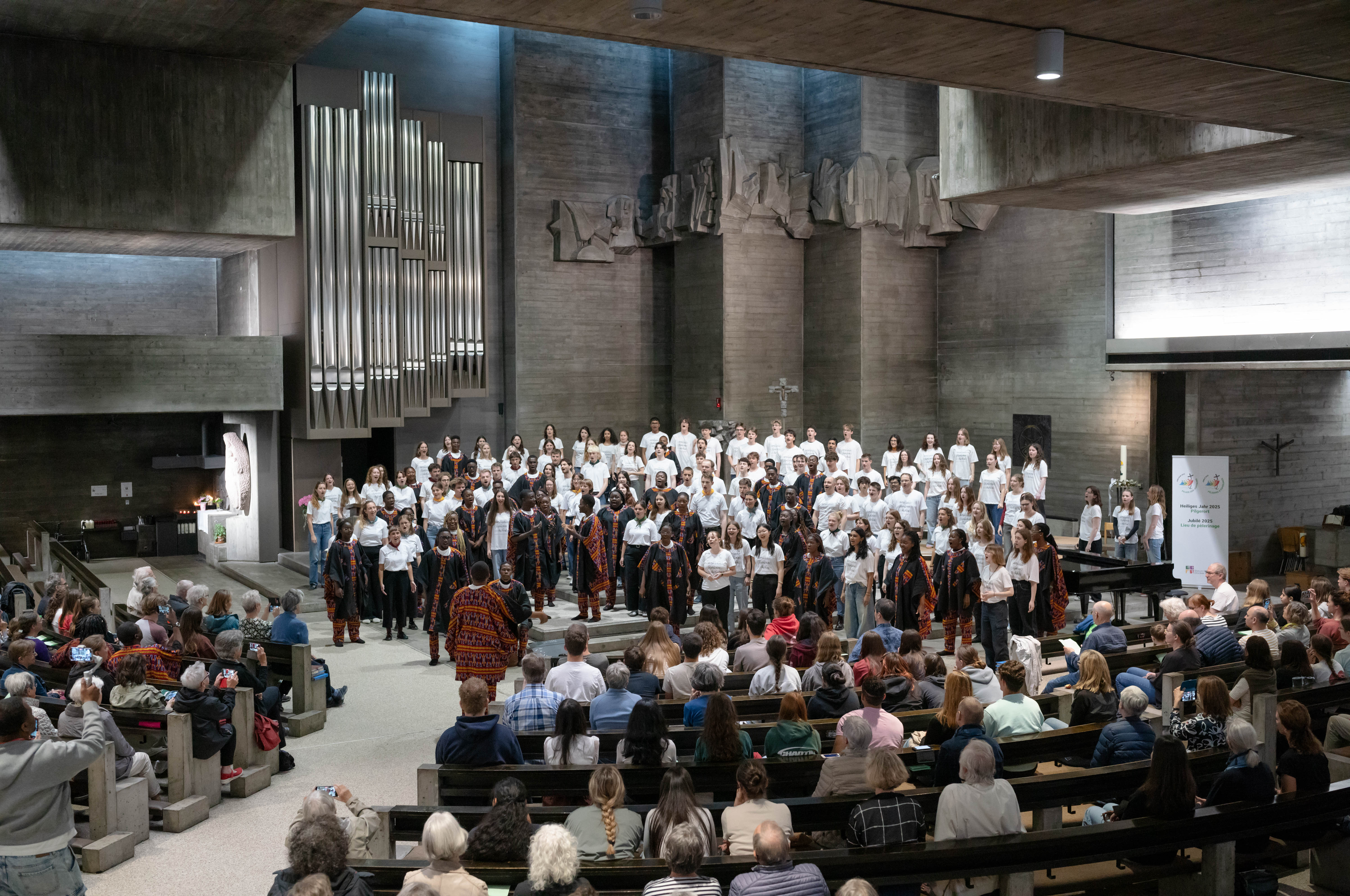 Bilder vom Lunchkonzert am 28.05.2025 in der Römisch-Katholischen Kirche in Muttenz: Gym Chor Muttenz, Appenzeller Jugendchor und Nationaler Jugendchor „MBOA“ Kamerun