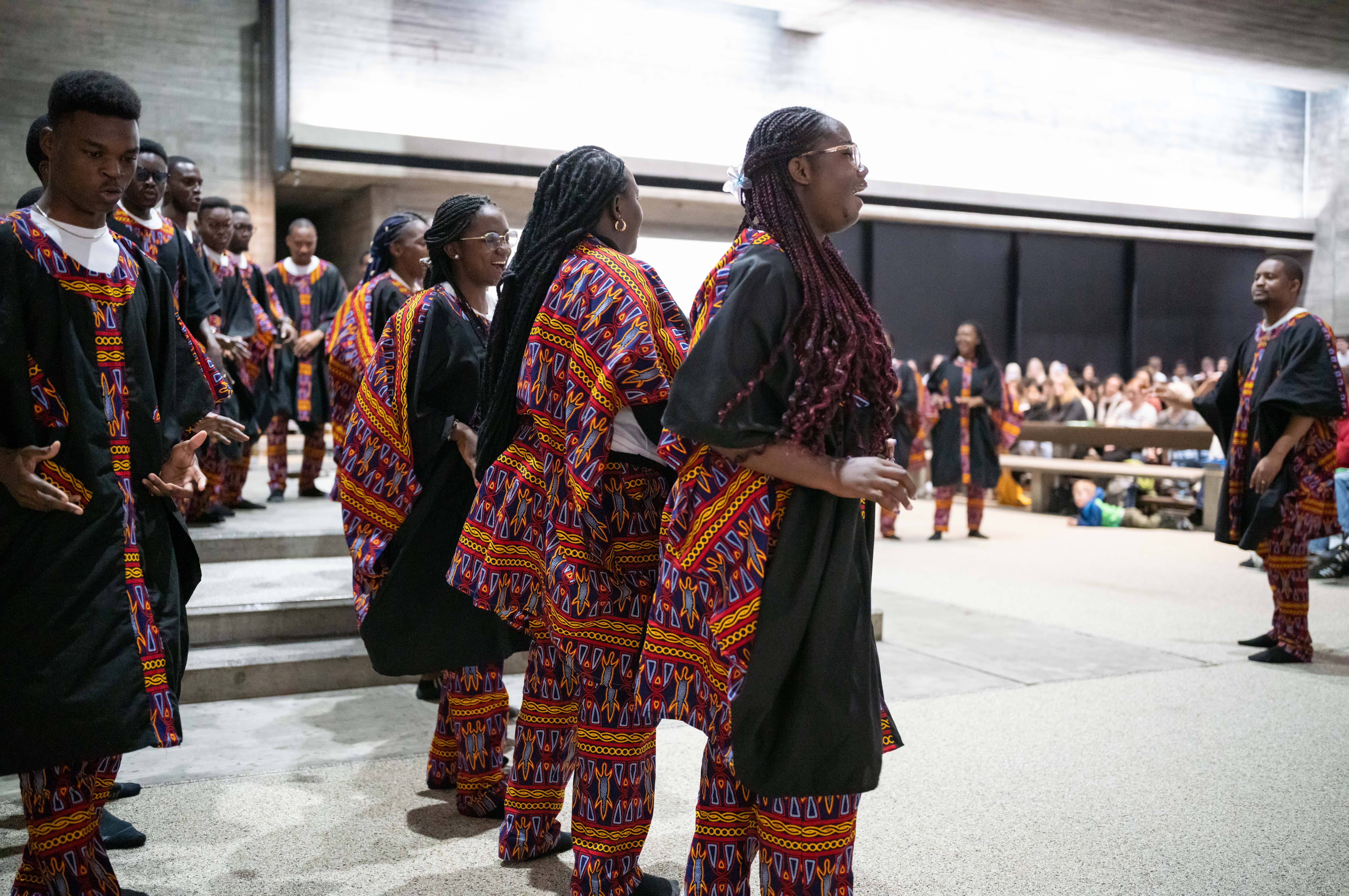 Danach folgte der Auftritt des Nationalen Jugendchors „MBOA“ aus Kamerun, welcher ebenfalls für grosse Begeisterungsstürme beim Publikum sorgte. Eine besonders starke Verbindung mit den Sänger*innen aus Kamerun hatten die Schüler*innen des Gymchor Muttenz, waren sie doch als Gastgeschwister in einem noch viel intensiveren Kontakt mit ihnen als die anderen Gymnasialchöre der Region Basel.