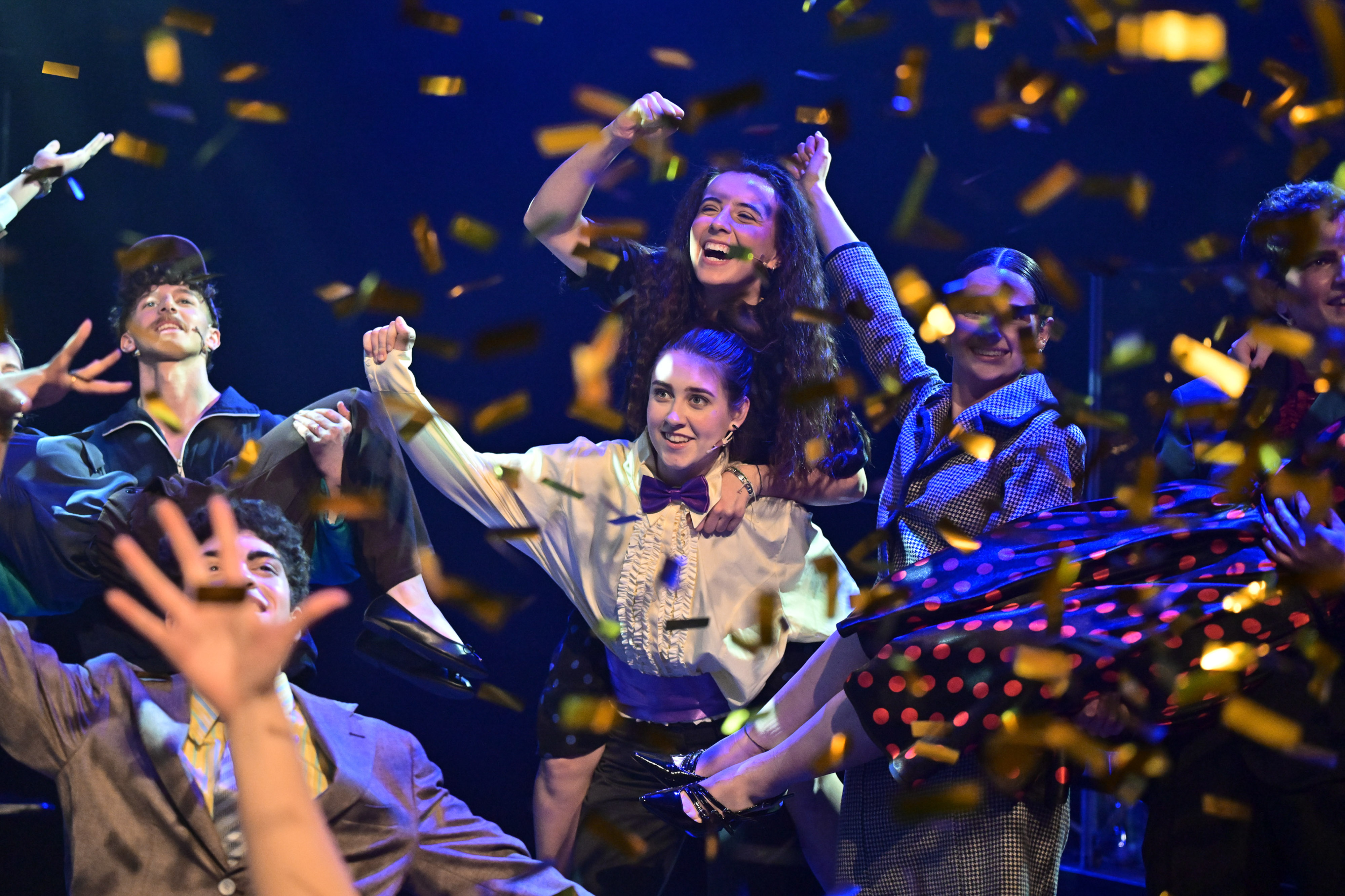Natürlich findet, einige Songs und Tanz-Moves danach, alles trotzdem ein gutes Ende. Das bedeutet: Ren kann den Reverend zwar nicht mit Bibelsprüchen davon überzeugen, dass Tanzen nicht gottlos ist, aber die beiden finden in der gemeinsamen Erfahrung des Verlustes – Rens Vater hat die Familie im Stich gelassen – eine Connection, die es ermöglicht, dass nicht nur der Tanzmuffel und Mama-Fan Willard (Max Wisler) seine Traumfrau Rusty findet, sondern alle zusammen an einer Riesen-Party „mit aller Macht vor dem Herrn“ tanzen (2.Samuel, 6,14). Dies zu einer Choreografie von Nicole Menzel, Aaruni Sureshkumar und Selma Terbeck, begleitet von der Live-Band unter der Leitung von Niels Pasquier. Der Funke springt über. Stillsitzen dazu ist unmöglich. Standing Ovation ein Muss. „You can fly if you’d only cut loose, footloose!“ Jetzt noch einmal an der Derniere.