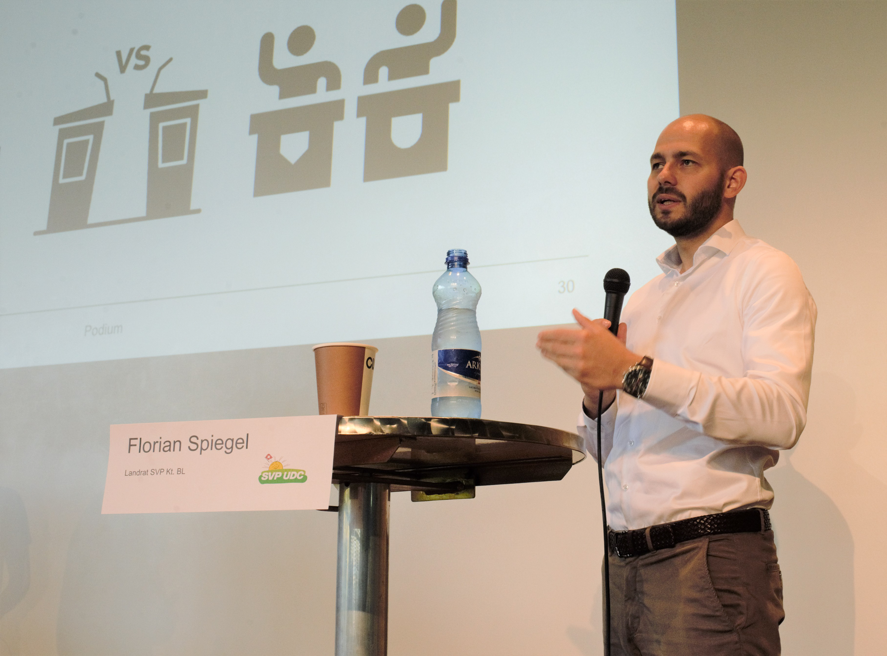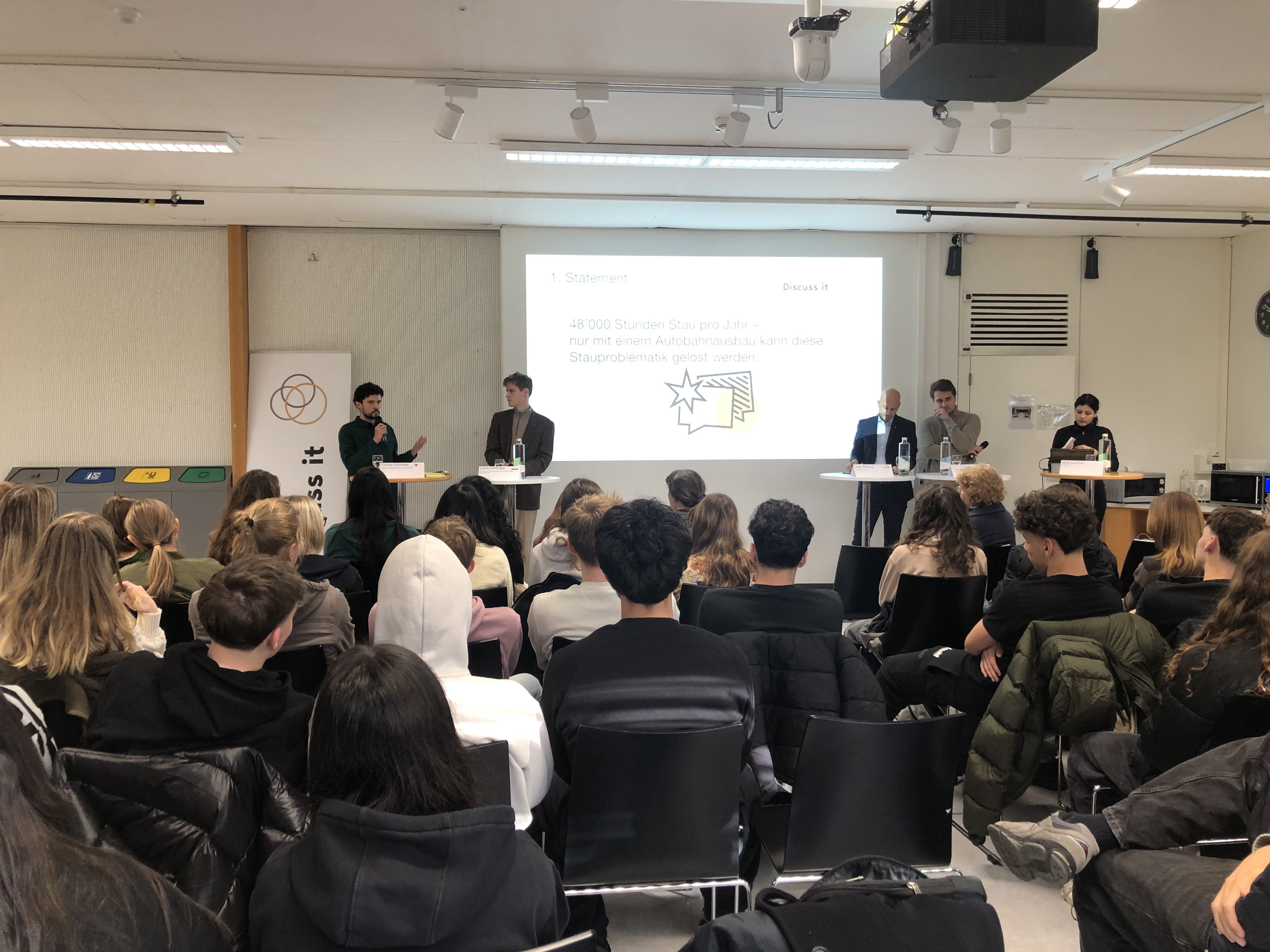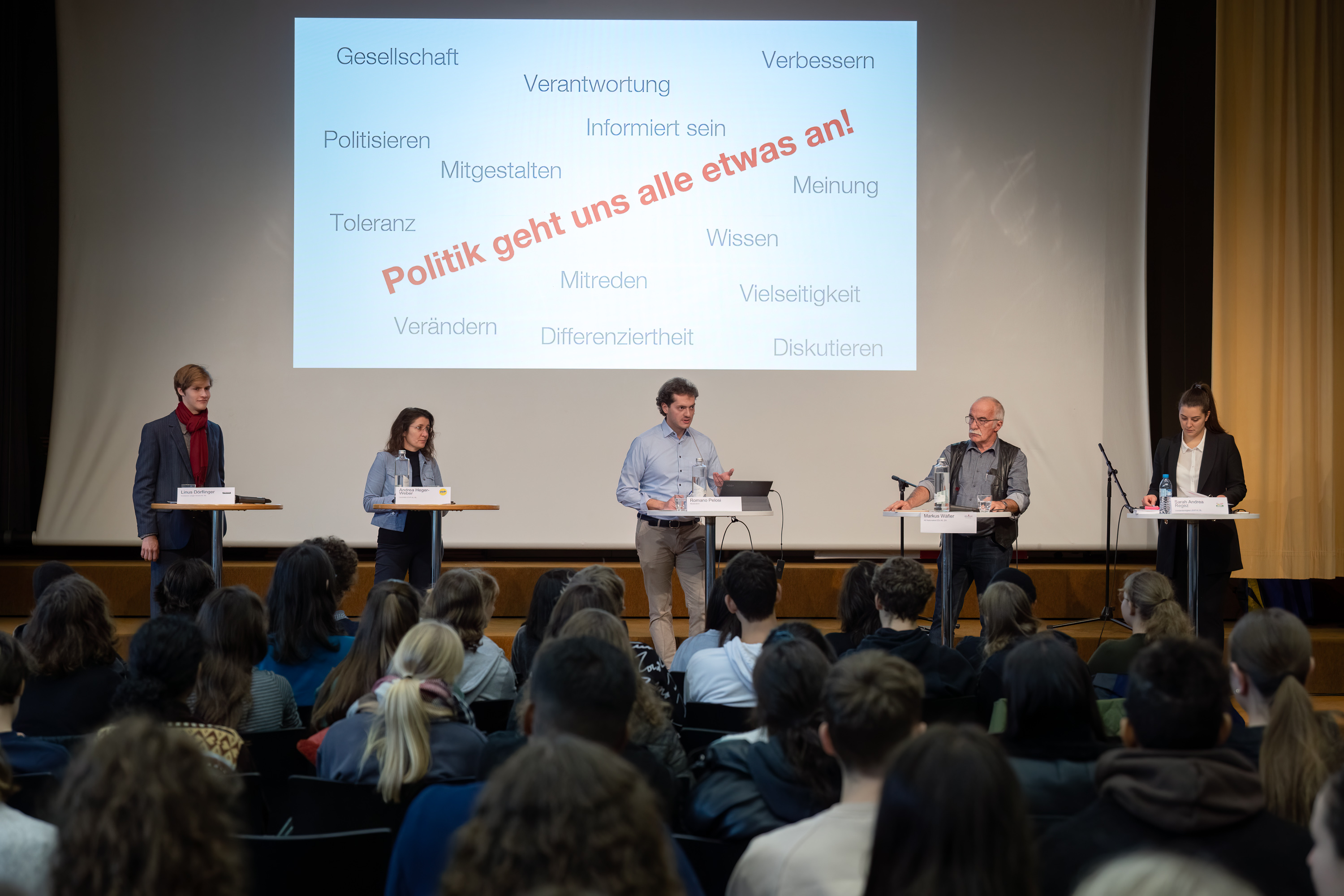Am diesjährigen Polithalbtag stand der Bundesbeschluss über den Ausbau der Nationalstrassen im Fokus. Alle Schüler:innen der 3. Gym- und FMS-Klassen befassten sich rund zwei Wochen vor der Abstimmung im Rahmen eines Workshops und einer Podiumsdiskussion mit diesem politischen Thema. Christof Manetsch (Foto: Claudio Conidi)