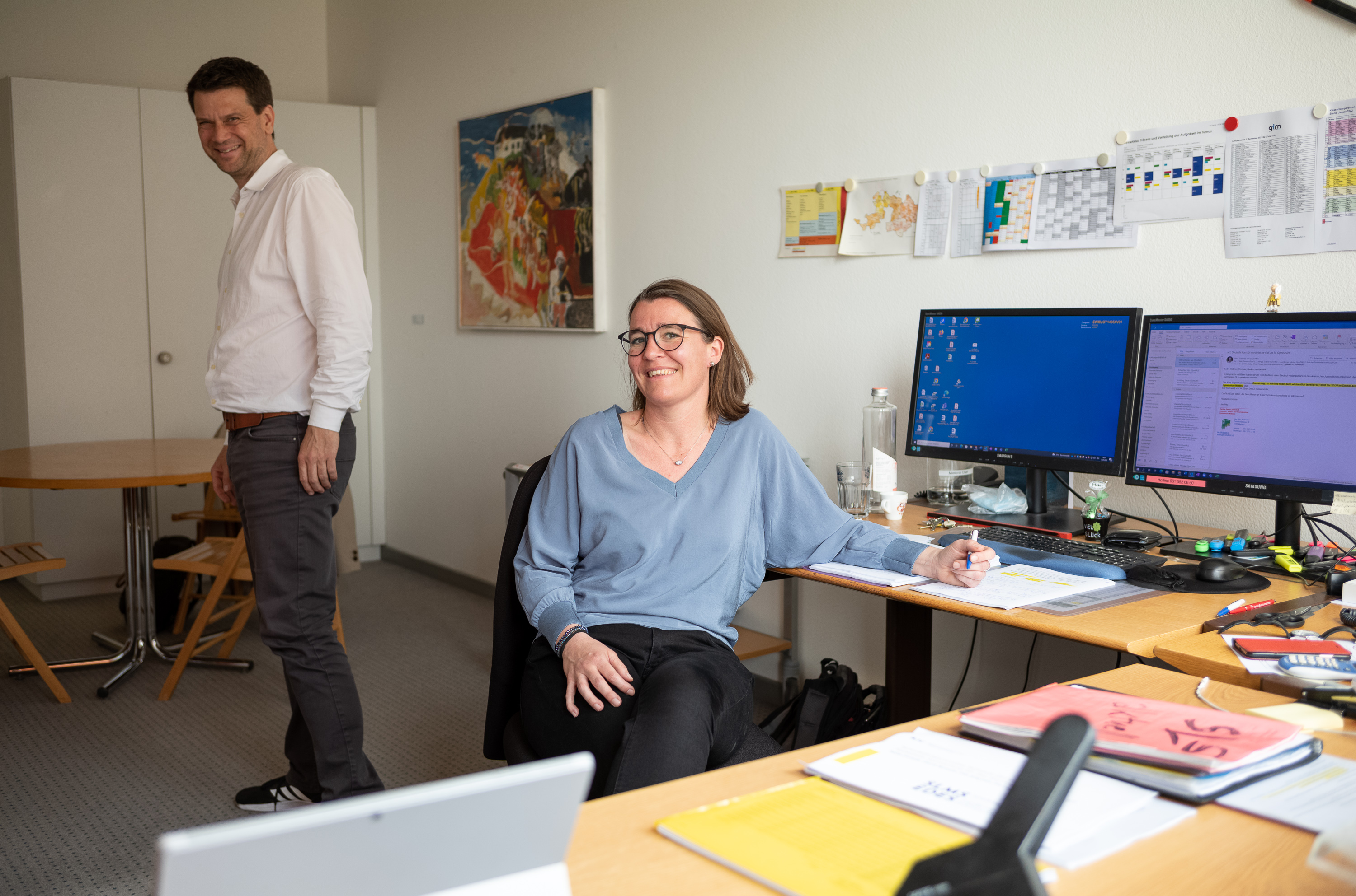 Premiere in Muttenz: Mit Jacqueline Herrmann und Alexander Bieger leitet erstmals ein Zweierteam das Gymnasium und die FMS. Im Interview mit dem Entfalter sprechen sie über Feuertaufen, Gratwanderungen und Spagate. Von Christof Manetsch und Michael Baumgärtner (Fotos: Daniel Nussbaumer)